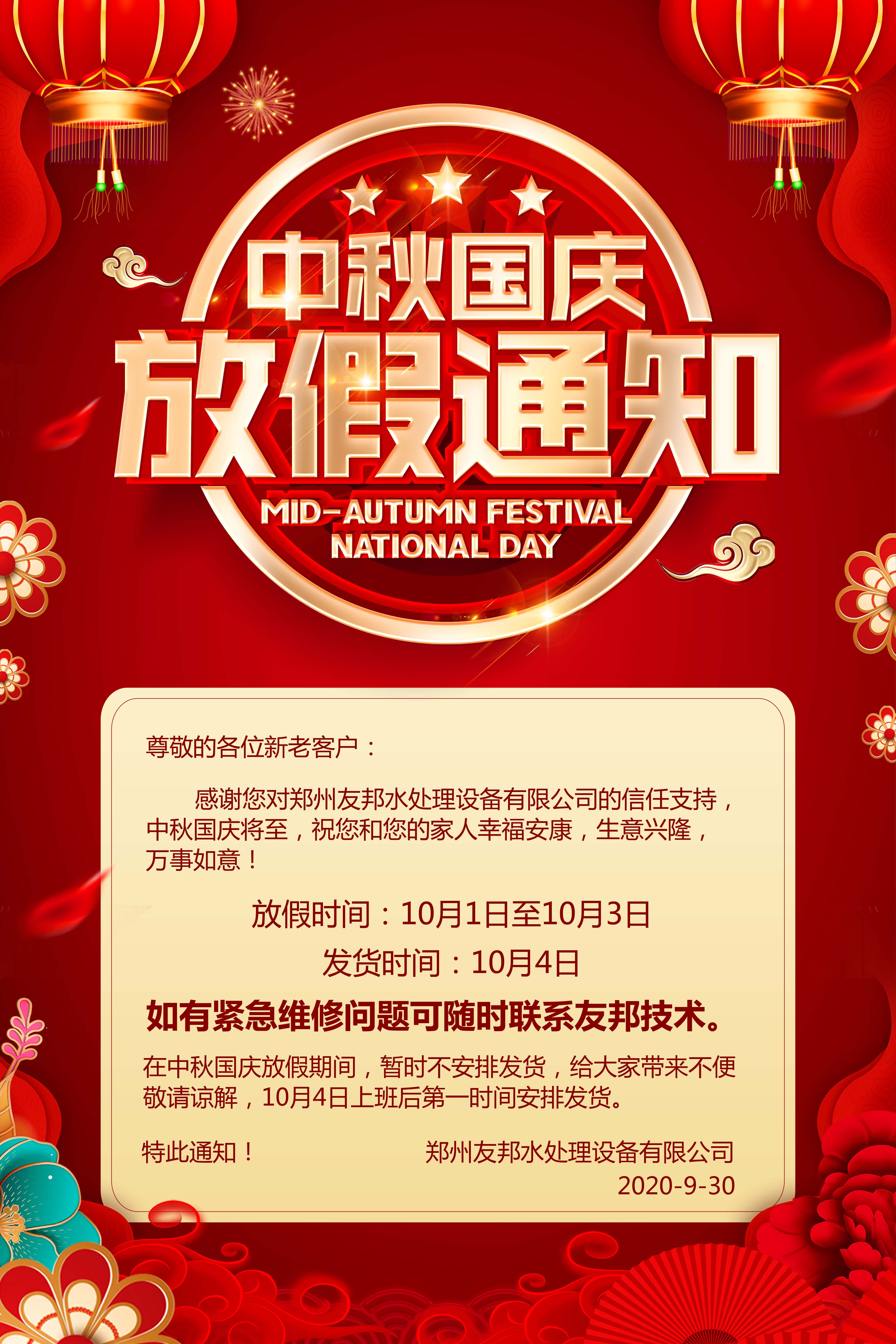 鄭州友邦祝大家雙節(jié)快樂